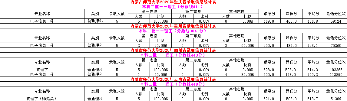 2020年录取信息
