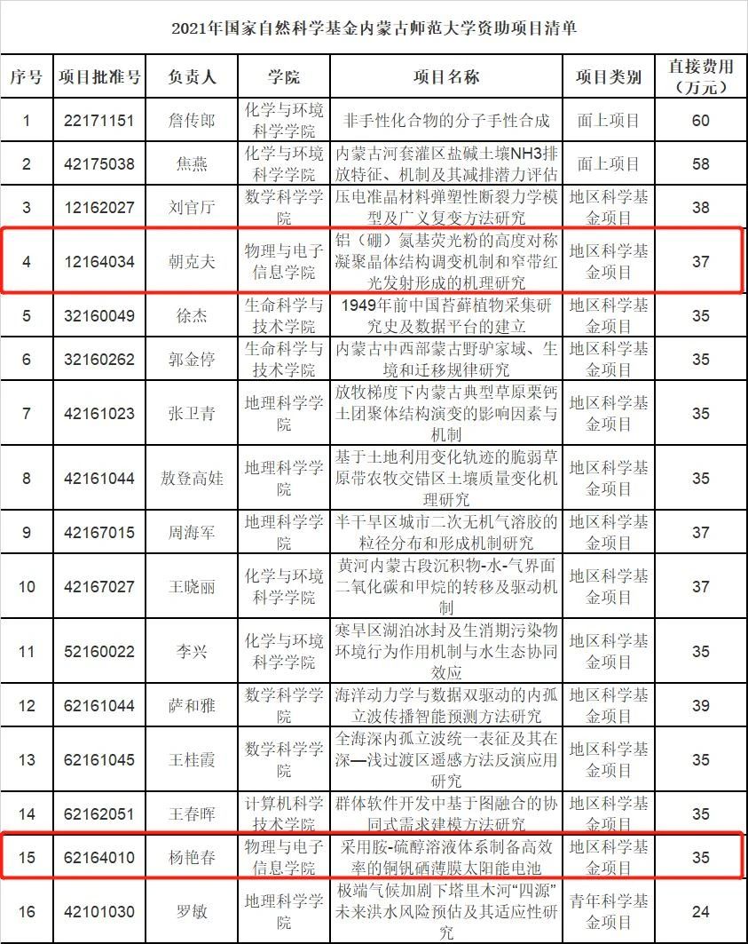 8月18日,国家自然科学基金委公布了2021年集中申报期国家自然科学项目评审结果,我校共获批国家自然科学基金项目16项,其中,球吧网 获批国家自然科学基金项目两项