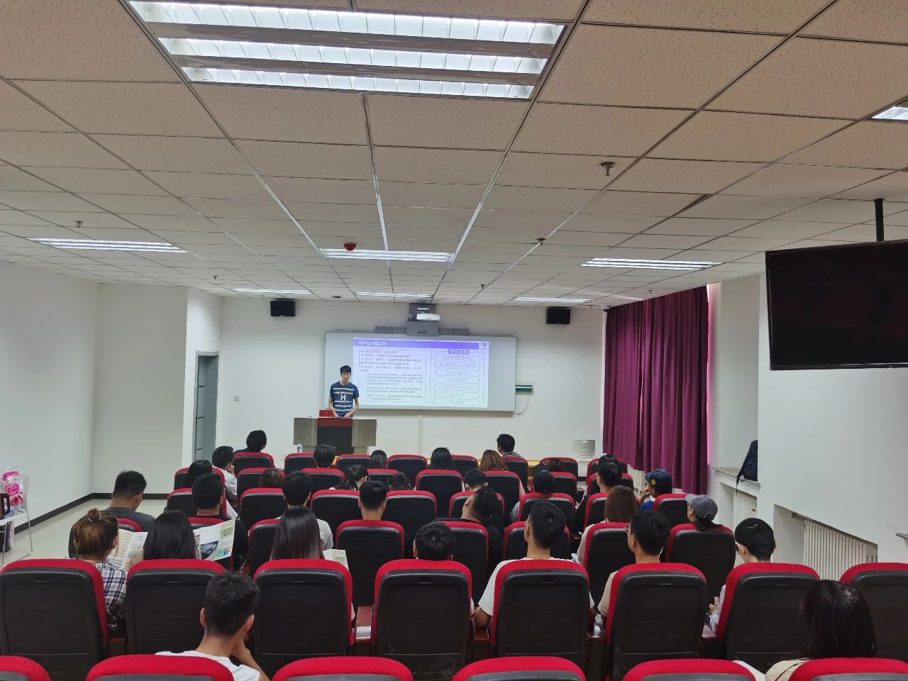 副院长曹永军、办公室主任张天臣出席宣讲会,18级物理学汉班、蒙班全体本科生参加,会议由物理系系主任朝克夫主持。