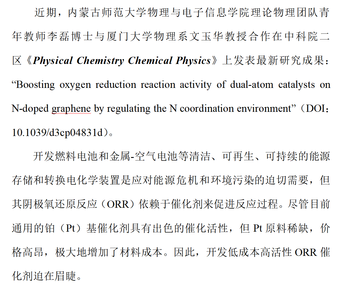 【科研快讯】球吧网 理论物理研究团队李磊老师在《Physical Chemistry Chemical Physics》发表研究成果