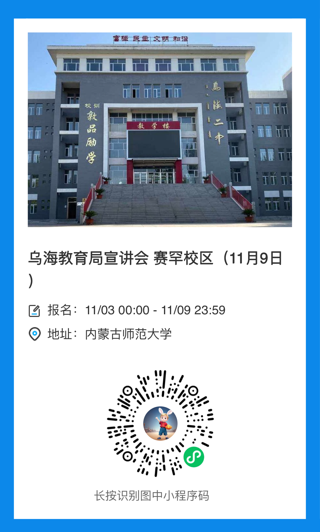 赛罕校区毕业生就业招聘中心北楼205室(北门往南60米十字楼口西南角)