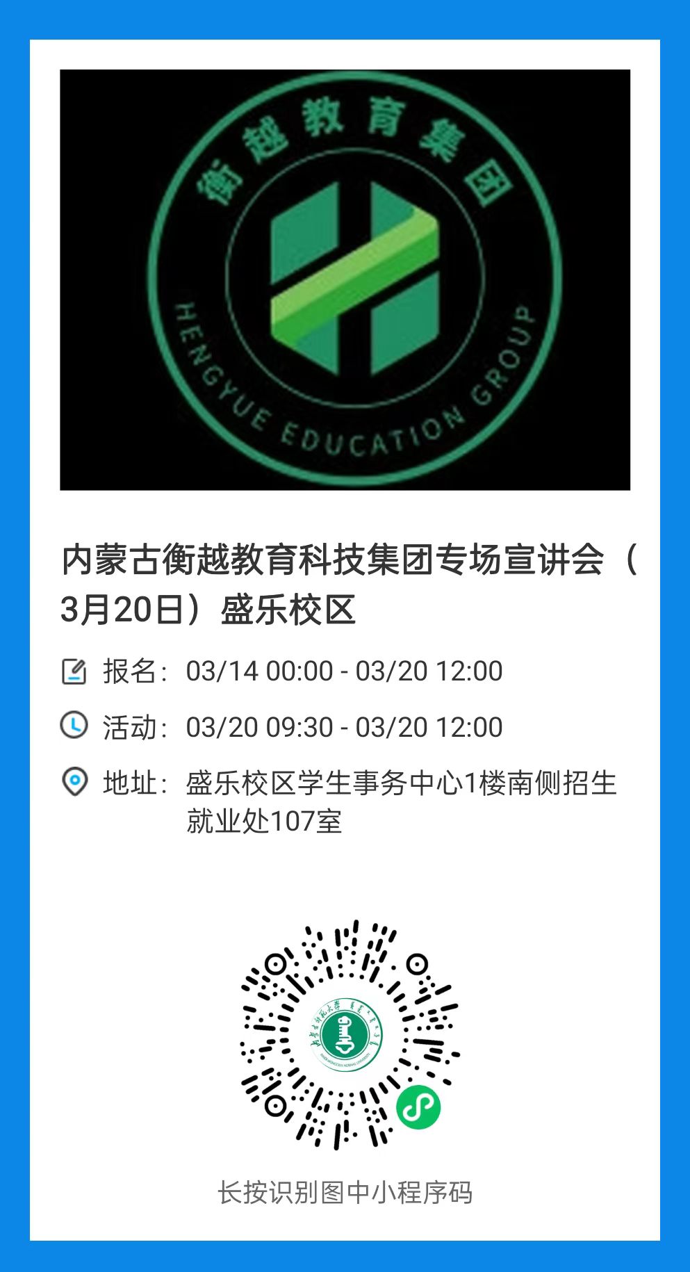 盛乐校区学生事务中心1楼南侧招生就业处107室