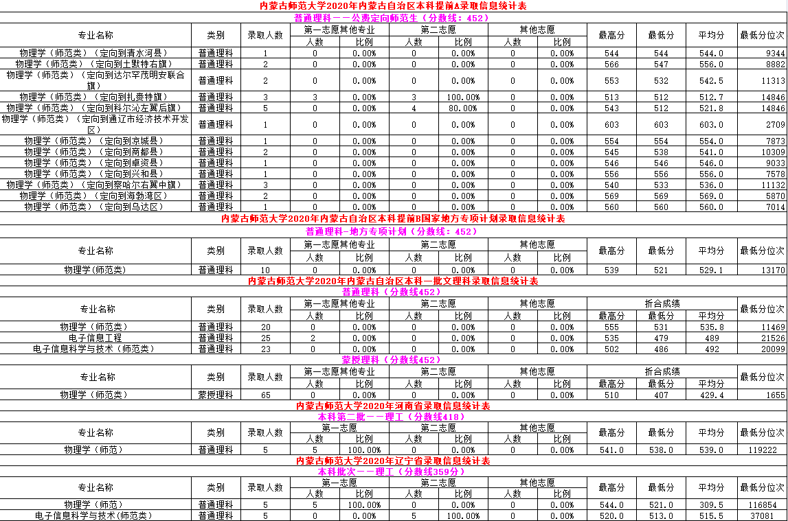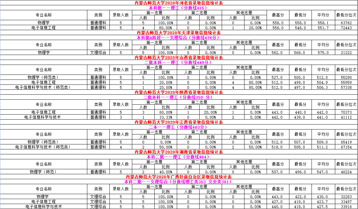 2020年录取信息