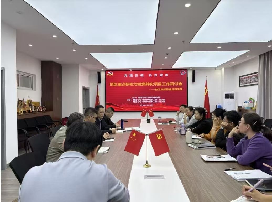 党委在理工楼A701会议室举办教工支部联合党日活动——地区重点研发与成果转化项目工作研讨会。本次活动由教工一支部和教工二支部共同承办,教工一支部书记欧志强主持,学院全体党员教师参加。