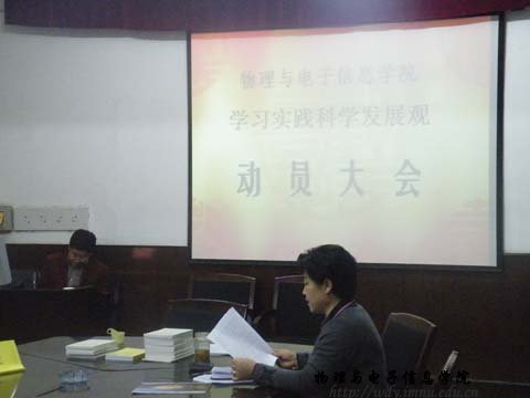 阿梅书记介绍了学校党委关于学习实践科学发展观的工作部署并作了学院学习实践科学发展观活动动员报告,她要求广大教职工党员深刻理解贯彻落实科学发展观的重要意义,全面把握科学发展观的科学内涵、精神实质、根本要求,增强贯彻落实科学发展观的自觉性和坚定性,将科学发展观的理论与教学科研实际工作紧密联系起来,在各自岗位上起到先锋模范作用。张伟院长强调,通过本次学习实践科学发展观活动,切实解决实际问题,全体教职工党员要积极行动起来,突出学院“教学科研上水平,学科建设创特色,教书育人见成效”的载体,推动学院各项工作全面协调可持续发展。