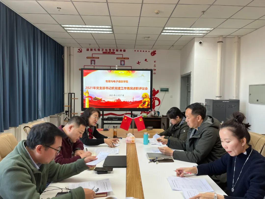 教工一支部、教工二支部、研究生支部和本科生支部4个支部书记逐一向学院党委进行现场述职,就支部的整体情况及2021年度的工作进行了详细的汇报,分析了当前支部建设存在的问题,并提出下一步的工作思路和改进举措。在各支部书记进行述职报告后,刘美玲书记对各支部工作情况进行了逐一点评,肯定了各支部本年度党建工作取得的成绩,以及各支部书记一直以来的辛勤工作和默默奉献,也分析了支部建设中存在的突出问题,并对党支部建设提出了相关建议。刘美玲书记强调,要认真学习贯彻党的十九大精神和十九届六中全会精神,将党建与学科建设、人才培养、教学科研以及创新创业等业务结合起来开展工作。