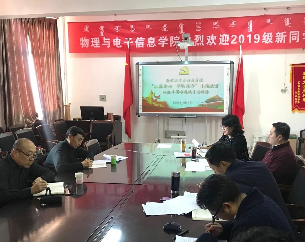 领导班子在物理楼304会议室召开“不忘初心、牢记使命”主题教育专题民主生活会。学院党总支书记刘美玲、副院长曹永军、副书记兼副院长张伟、副院长那日苏出席,党总支委员、环节干部、支部书记参加,党外人士列席会议。学校“不忘初心、牢记使命”主题教育第六指导组张克玉、董强到会指导。