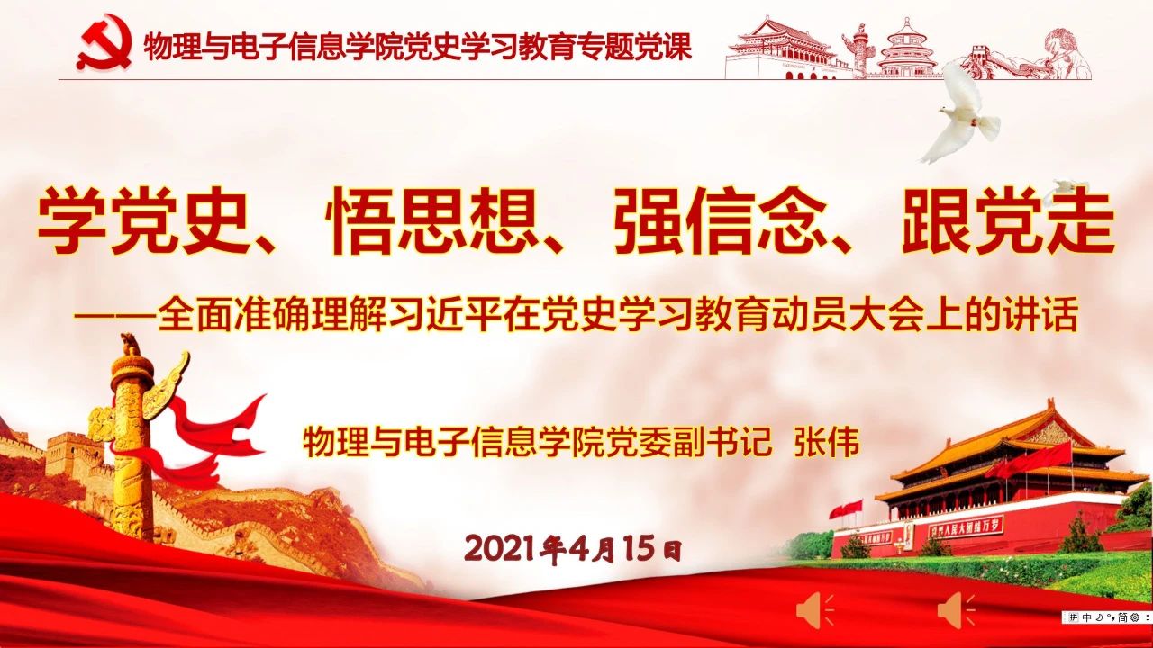 刘美玲强调,一是要牢牢把握学习教育的目标要求,提高政治站位,充分认识开展党史学习教育的重大意义,自觉用党的创新理论武装头脑、指导实践、推动工作。二是党员领导干部、支部书记要充分发挥示范作用,主动学、带头学,抓好专题学习,创新方式方法,形成一级带一级、层层抓学习的良好局面。三要扎实开展“我为群众办实事”实践活动,做到学史明理、学史增信、学史崇德、学史力行,学党史、悟思想、办实事、开新局,努力展现出物电风采、作出物电贡献,以优异成绩庆祝中国共产党成立100周年。