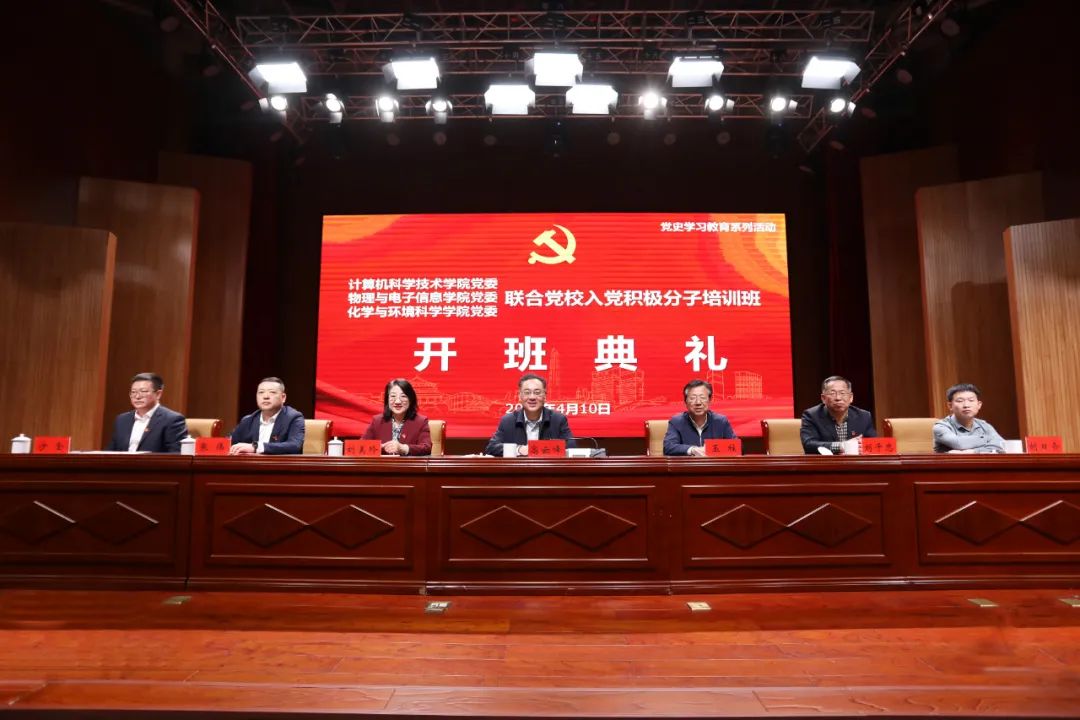 党委副书记兼副院长张伟、计算机科学技术学院党委副书记兼副院长沙金、化学与环境科学学院党委副书记兼副院长胡日查、各学生党支部书记及培训班574名学员参加开班典礼。