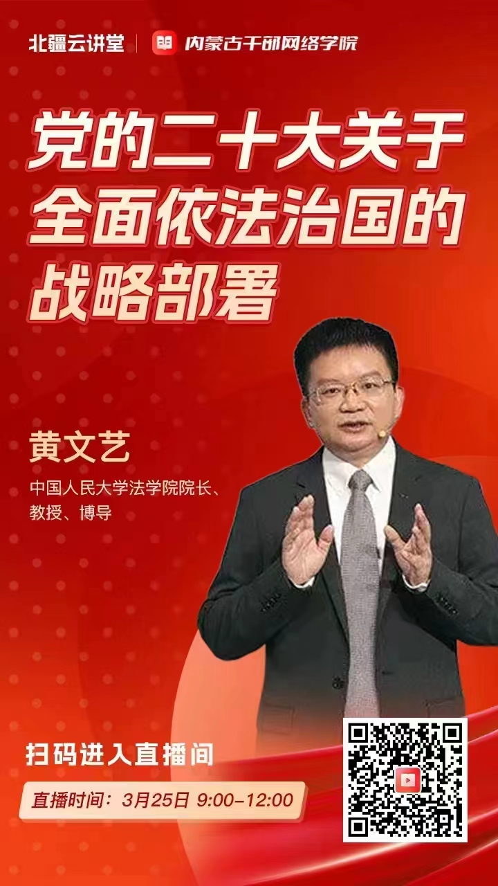 中国人民大学法学院院长、教授、博导黄文艺围绕“党的二十大报告前所未有高度重视社会主义法治建设,是加快建设社会主义法治国家的政治宣言、党的二十大报告全面深化了共产党依法执政规律、社会主义法治建设规律、人类社会法治文明发展规律的理论认识、是丰富和发展习近平法治思想的纲领性文献、党的二十大报告科学阐释了中国式法治现代化的本质特征和鲜明特色,是构建人类法制文明新形态的战略部署”三方面详细阐释了全面依法治国的战略部署这一主题。