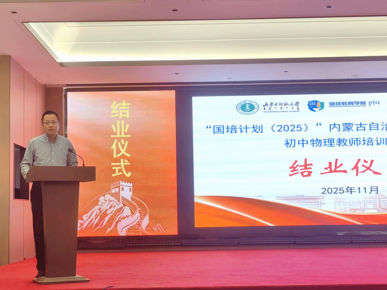 承办的“国培计划(2025)”——内蒙古自治区旗(县)级中学初中物理教师培训项目圆满结束。作为本次培训的收官环节,结业仪式于当日顺利举行。仪式由学院办公室主任张天臣主持。
