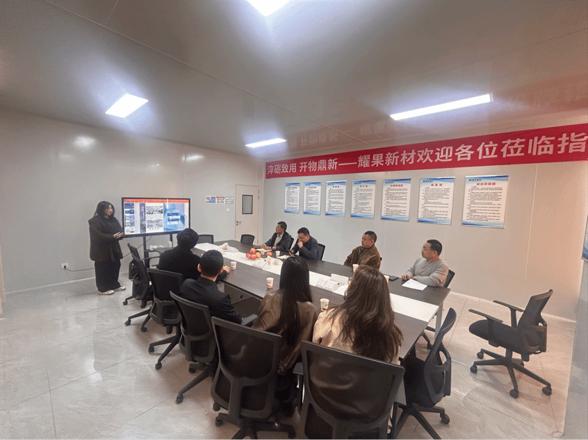 耀果新材料有限责任公司总经理高昌轩、常务副总经理高文学及相关工作人员与球吧网 师生进行座谈交流。座谈会上,学院介绍了学科特色与人才培养优势,企业表达了吸纳人才的诚意,双方围绕联合培养、人才招聘、校企科研共创及材料融合模式等内容展开交流。