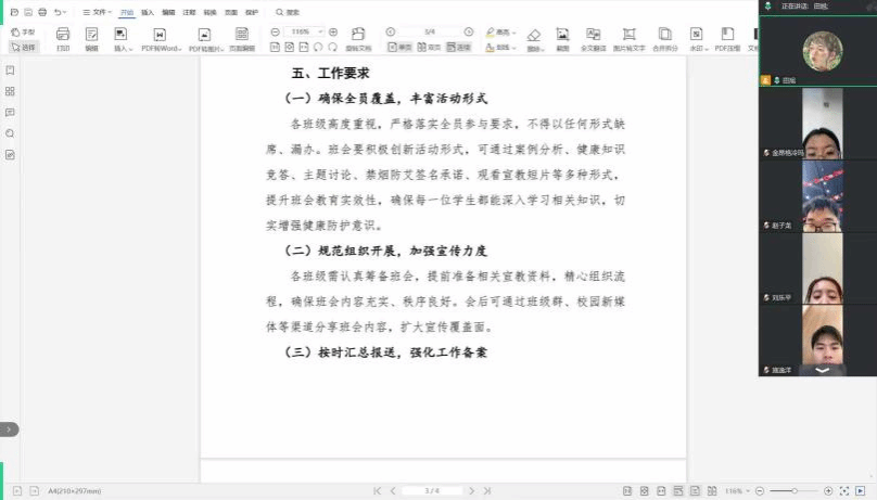 各班级围绕安全防范、禁烟控烟、健康防护三大重点,通过案例讲解、知识学习、主题讨论等形式,普及交通、消防、防骗、防欺凌等安全常识,宣讲烟草危害与校园禁烟规定,普及春季传染病及艾滋病防控知识,引导学生增强自我保护意识,养成健康文明生活习惯。