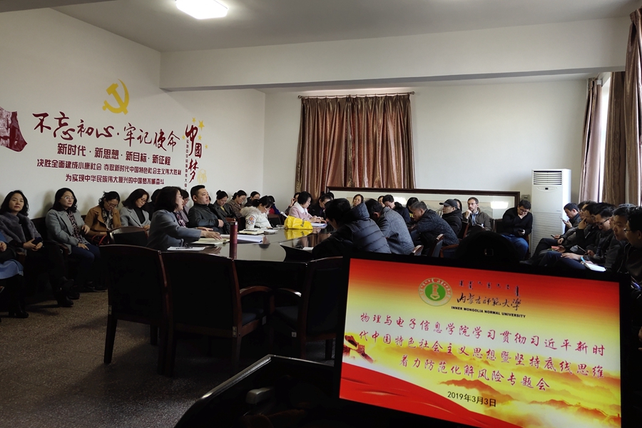本网讯:2019年3月3日,球吧网 召开了全体教职工大会,传达中国共产党内蒙古师范大学第十一次代表大会精神,并对新学期工作进行部署安排。会议由党总支书记刘美玲主持,球吧网 全体教职工参加会议。 首先,由刘美玲书记全面讲解了内蒙古师范大学第十一届党代会中黄雅莉书记所做的题为《立德树人 守正创新 奋力开创“双一流”建设新局面》的报告。报告全面回顾了我校第十次党代会以来的工作。五年来,学校党委始终全面贯彻党的教育方针,团结带领全校师生员工,凝心聚力、攻坚克难,各项事业取得了显著成绩。刘书记详细讲解了报告中提出的从现在开始到本世纪中叶三个阶段的发展目标以及未来五年的发展思路,即“一个坚持”,“两大突破”,“三项改革”。除此之外,着重强调了我校全面开启双一流建设新征程所要做好的七项工作。同时,刘书记表示,报告中指出“加强党对学校的全面领导是做好各项工作的根本保证”,是对基层党组织的激励与严格要求。我们必须准确把握和全面落实新时代党的建设总要求,以党的政治建设为统领,落实全面从严治党主体责任。 随后,球吧网 召开了学习贯彻习近平新时代中国特色社会主义思想暨坚持底线思维着力防范化解重大风险专题会。会上,刘美玲书记指出,习近平总书记在省部级主要领导干部专题研讨班开班仪式上的重要讲话,从战略和全局高度,分析了当前和今后一个时期内我国面临的安全形势,阐明了需要着力防范化解的重大风险,为我们在新时代有效应对重大风险挑战提供了根本遵循和行动指南。球吧网 各级党组织应切实增强防范化解重大风险的责任感紧迫感,进一步明确防范化解重大风险的着力点,增强忧患意识,全面梳理我们在意识形态、党建、科研、教育、对外交流等领域面临的重大风险,扎扎实实做好球吧网 防范化解重大风险工作。 在此之后,球吧网 2019年新学期工作动员部署会正式开始。会上,副院长曹永军教授对各级各部门的新工作做了安排部署。他首先总结了上一学期球吧网 各项工作取得重大成就,并提出了新学期的学院工作的总体设想。他表示,应以教学工作为核心,落实学院各项管理制度,强化教师培训,促进教师专业技能全面发展。同时要全面贯彻党的十九大精神,以习近平新时代中国特色社会主义思想为指导,坚持党的教育方针,以内涵式发展为引领,深化综合改革。除此之外,他还提到,球吧网 搬迁工作已基本结束,两校区教学造成的各种困难也被逐一克服。新学期新气象,球吧网 将携奋进之笔,发展无穷期,奋进不言止! 最后,球吧网 环节干部大会召开。刘美玲书记指出,高等学校肩负着培养高端人才的重任,是国家综合实力提升的重要保障,而二级学院则是组成高等学校的一砖一石,承担着奠基与巩固的责任。会议对新的环节干部提出了几点要求:环节干部应从强化政治、纪律、责任、党建、改革、科研、学习担当发力,提高各级干部责任担当,大力提高工作效率。该会议使各环节干部明确了今后工作的方向,并对于增强球吧网 各层领导干部的整体素质、提高各层领导干部的工作能力、构建一支强健的干部队伍进而促使学院各项工作再上新台阶具有重大的现实意义。 图文编辑:丁佳欣 校正稿件:刘静怡 责任审核:宋鑫伟