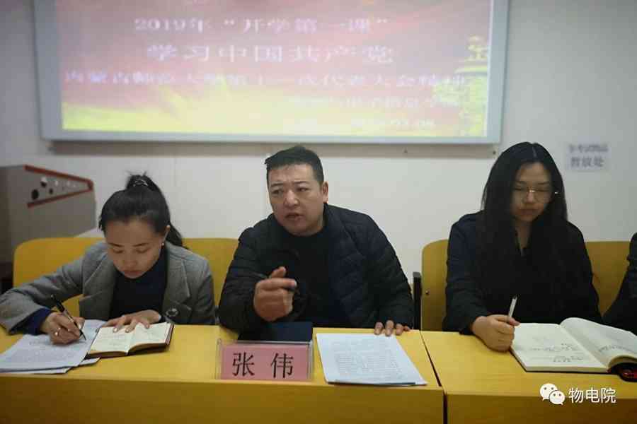 在盛乐校区理工楼A209室组织开展了2019年春季“开学第一课”,解读中国共产党内蒙古师范大学第十一次代表大会精神,会议由学院党总支副书记兼副院长张伟主持,辅导员木其尔、王乐、宋鑫伟以及院学生会全体成员参加了本次学习。