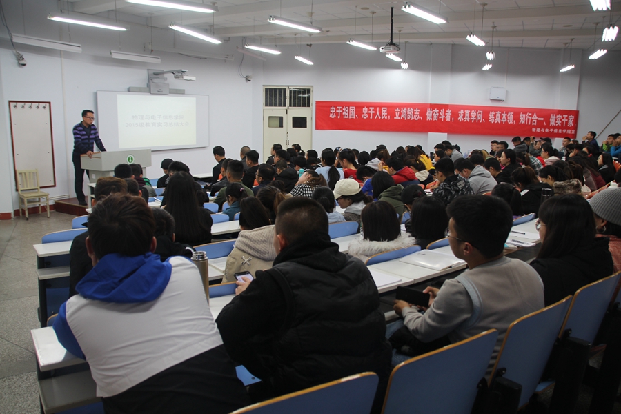 本网讯 2018年11月14日,球吧网 在赛罕校区田楼九共举办了2015级学生“我的肩膀—能挑多重的担子?”主题教育实习总结大会。学院党总支副书记兼副院长张伟、副院长那日苏、实践创新部万欣欣、15级物理学蒙班班主任哈木图、物理学汉班班主任田晓、16级物理学蒙班班主任哈斯朝鲁、物理学汉班班主任孙咏萍、学工办木其尔与15、16级物理系学生参加总结大会,大会由那日苏教授主持。 会上,首先由那日苏教授对学院本次实习工作总结道:本次实习由教务处统一安排,赴巴彦淖尔、赤峰、兴安盟等初中进行实习。每个人都能得到踏上讲台的机会,在学习理论知识的同时通过实践增长学生的教学经验,有利于教学技能的提高与发展。随后由15级物理学蒙班、汉班的六名同学进行现场模拟教学。经过一个月的实习历练,同学们能够用设计精巧的PPT、完整流畅的口语表达将看似“无趣”的物理知识教授给学生,赢得了台下领导老师与同学的阵阵掌声。 本次教育实习总结大会旨在深入贯彻落实全国教育大会和新时代全国高等学校本科教育工作会议精神,提升球吧网 本科师范生教育教学工作。一个多月的实习生活,让同学们在实践过程中得到了成长与锻炼,巩固了基础物理教学的基本技能,更收获了浓浓的师生情谊,深刻体会到了为人师表、教书育人的价值和意义。 图文编辑:新闻专题部 校正稿件:姚锦明 责任审核:萨其尔