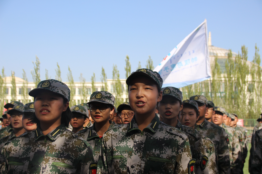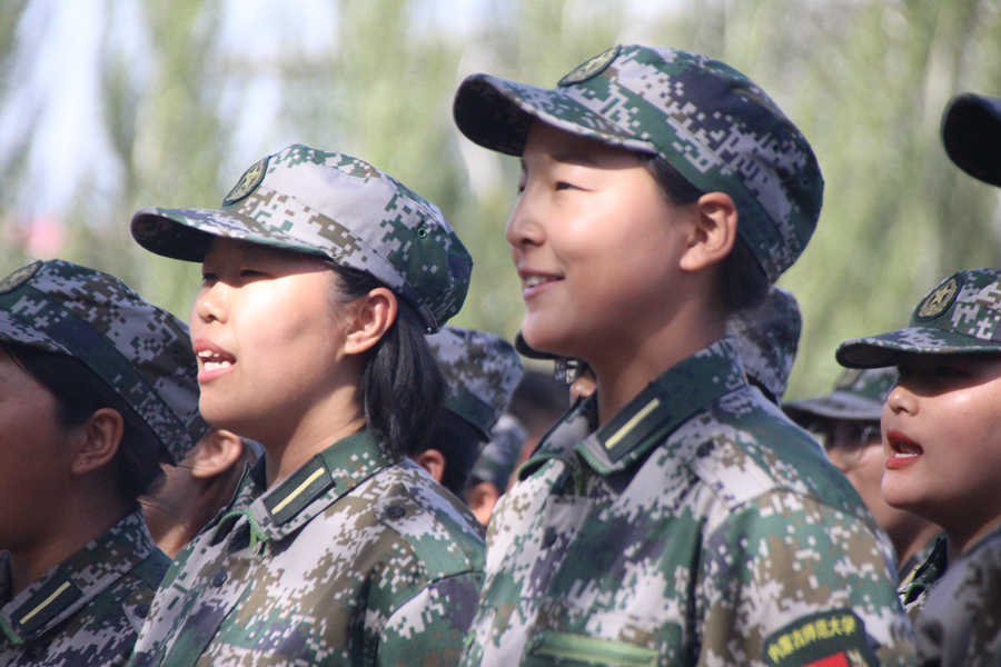 新生军训以来的精神面貌及队伍训练水平。一字一句都铿锵有力,仿佛有气吞山河的气势;一颦一笑都饱含自信与阳刚,如同天下尽收眼底!