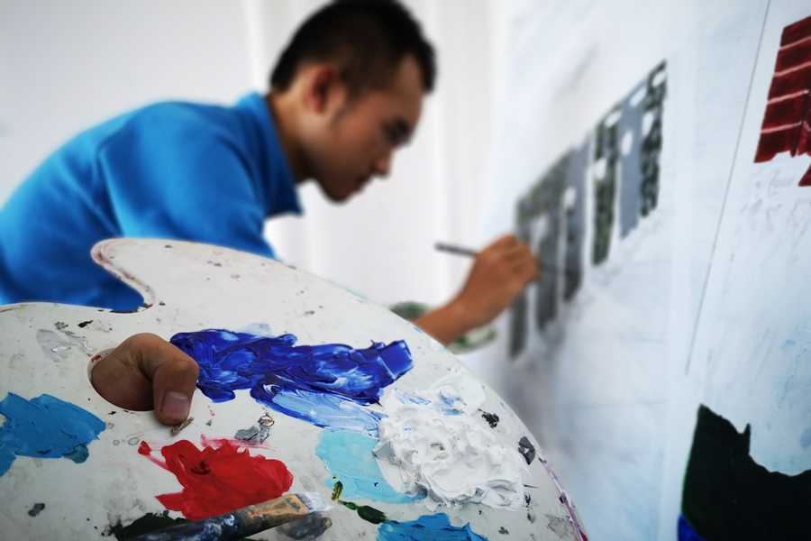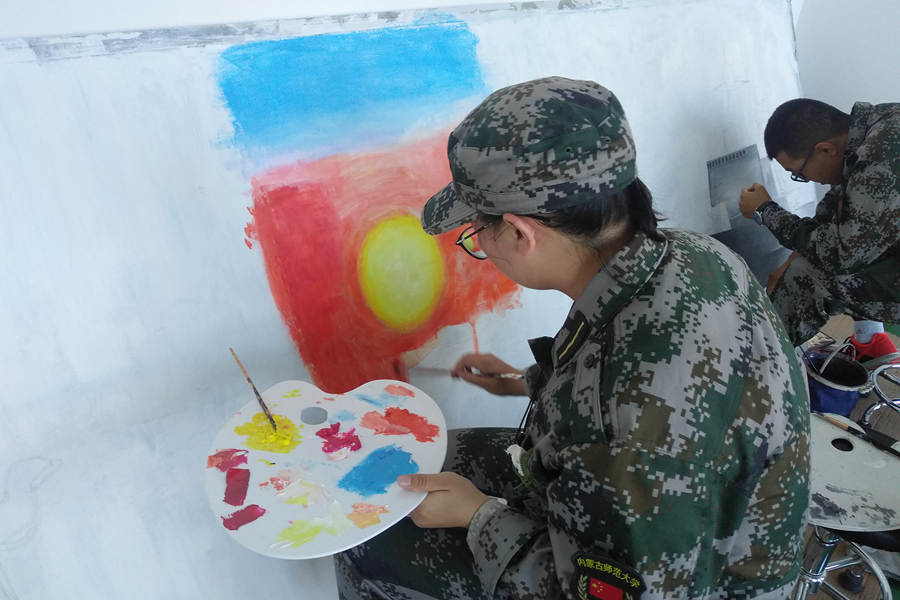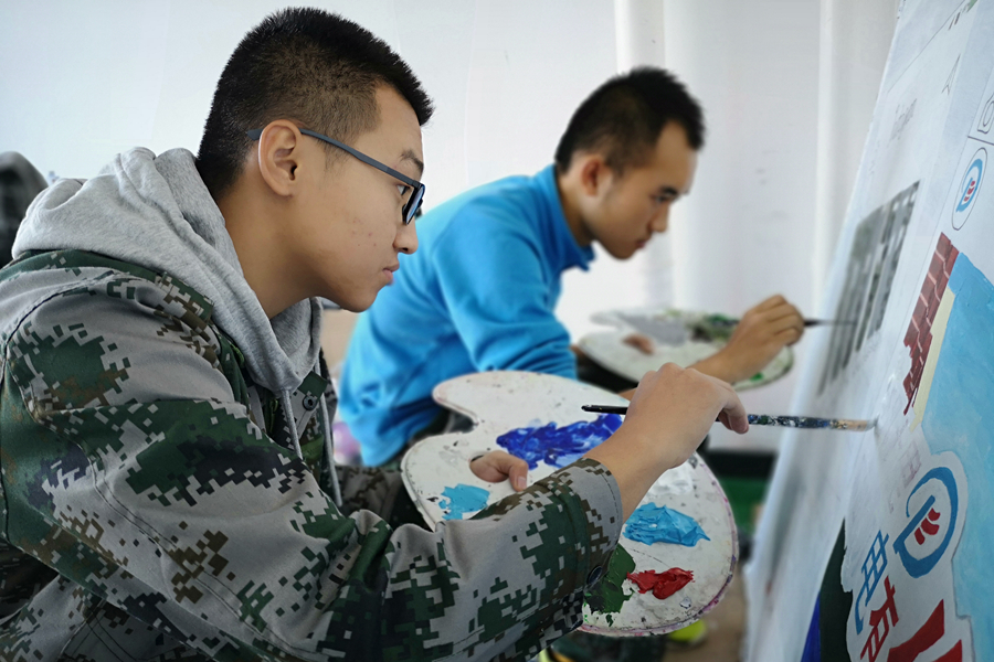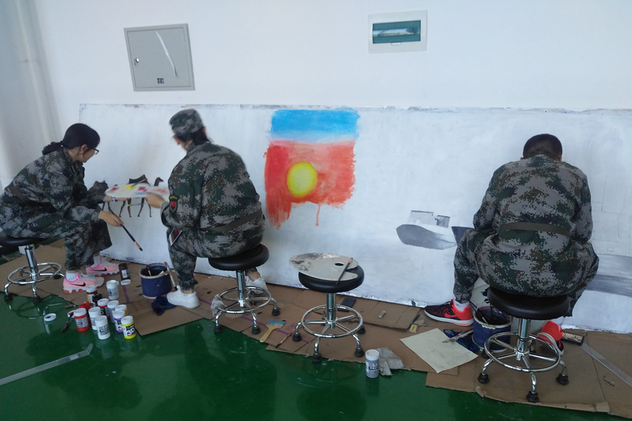 本网讯 为了参加学校军事训练板报评比,球吧网 挑选出拥有美术特长的同学们进行板报绘制工作。没有军训的他们,却不比军训轻松半分,有时创意会被否定、迟迟定不下样品;有时画到一半发现不妥、需要涂白;有时得到了更好的新点子,甚至要推倒重来……他们笔耕不辍、日夜颠倒,只为了得到最完美的成品,他们早起晚归,体验着一次次挫败,但最后成品出来时,他们可以和训练场上的人一同说一句:“我努力了!”