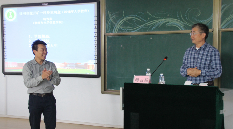 首先由学工办芦嘉琛老师为新同学们介绍主讲人:特古斯院长。特院长在讲话中对新同学的到来表示热烈欢迎,并为同学们介绍了学院现阶段的办学情况、师资力量和学科特点。随后又以自己的求学经验告诫新生同学,一要要加强学习意识、努力学习专业知识、提高专业素养;二要要目标明确、对人生有所规划,不让大学四年虚度。最后希望同学们能够拥有刻苦钻研的精神和不畏困难的韧性,为自己拼出一个美好的未来。