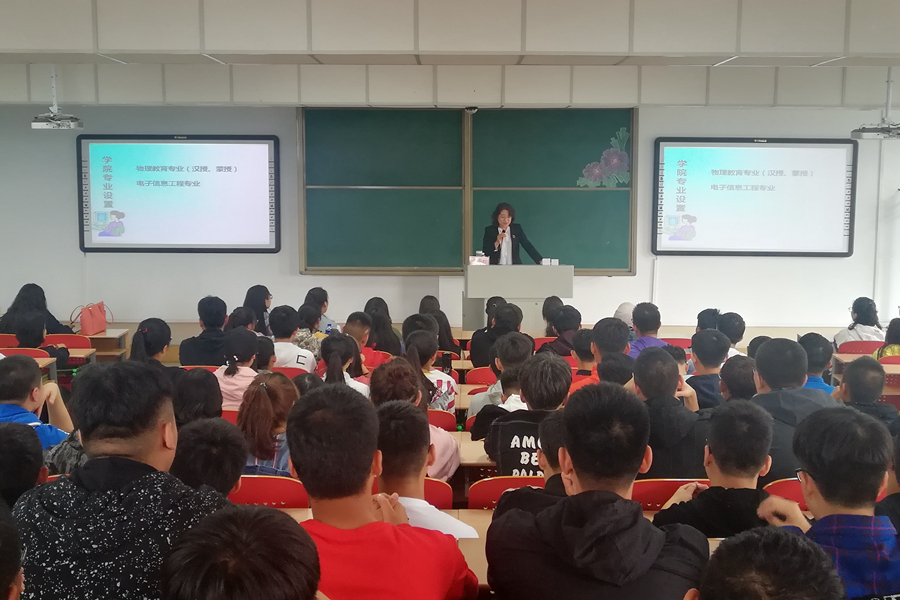 于行知楼225教室为2018级全体新生进行《如何建立专业思想》新生教育讲座。学院副院长刘美玲老师担任主讲人。