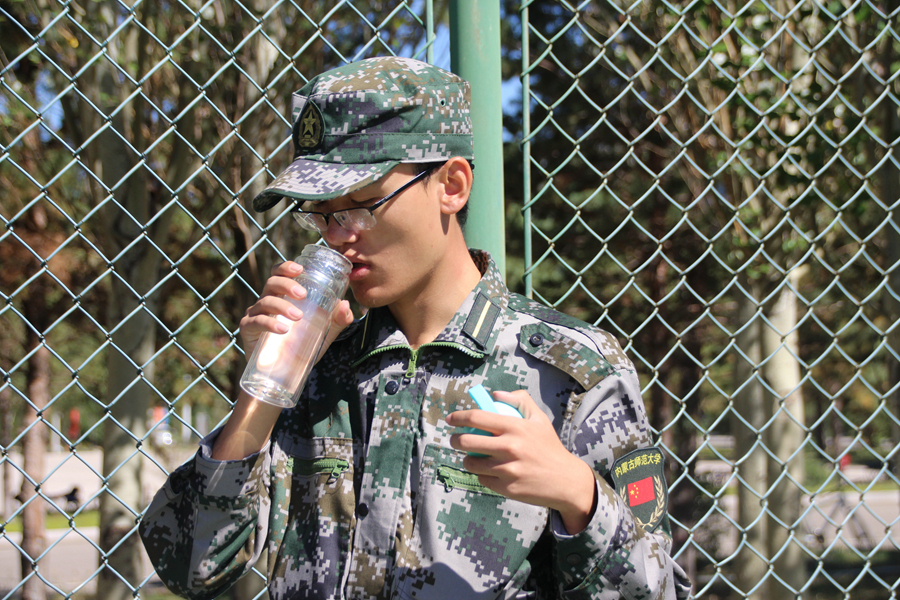 训练场上,被编成一个个方阵的新生们在各自教官的指挥下进行着训练。今天的他们已经没有了昨天初入训练场时的手足无措,取而代之的是满满的自信与坚定。高昂嘹亮的口号声回荡在训练场中,喊出了物电的青春活力,喊出了物电的斗志昂扬。   同学们在场上艰苦训练,老师与学长学姐们早已在场边准备好了老师“秘制”保护嗓子的冰糖金银花茶,将同学们的水杯灌满,让大家一结束训练就能喝到温热的水。我们都希望能让同学们在这段短暂的军旅生活中得到收获、感受温暖。