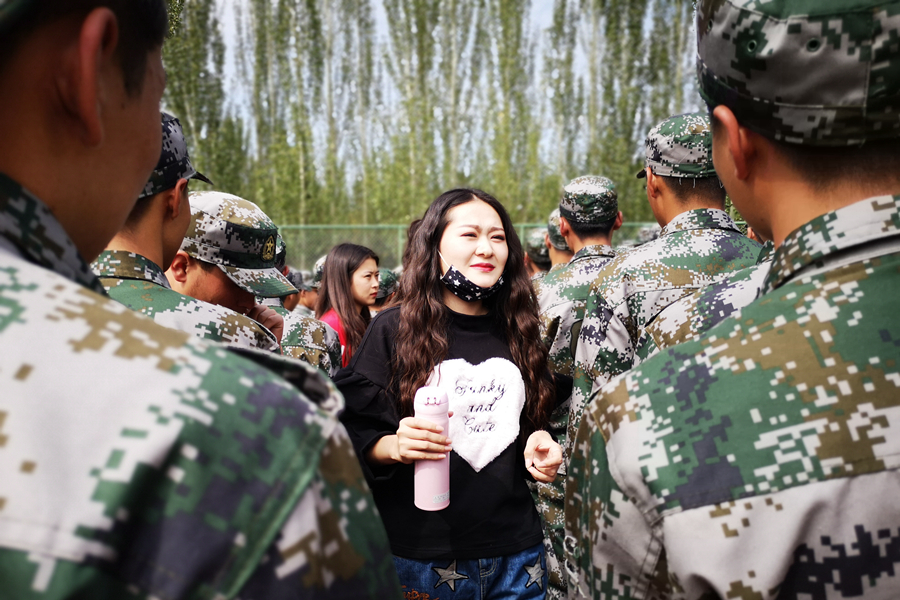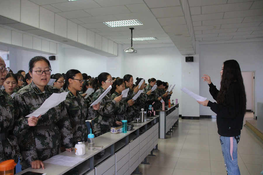 为了让同学们取得好成绩,指导老师也不辞辛劳地每日来为同学们纠正错误、精进技术。为了使整体效果更好,孙老师让同学们一排一排地分别演唱,纠正了很多同学的音准。孙老师告诉同学们,军歌要的是无与伦比的气势与最饱满的情感。“练就杀敌硬本领,练得豪气冲云天”,这样的歌词怎能不让人振奋,怎能不吼出穿云裂石的气势!