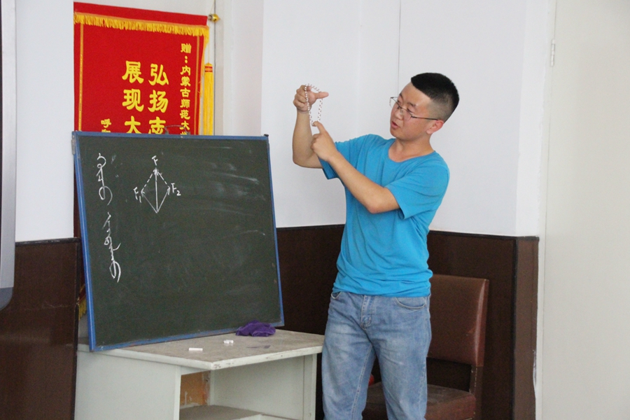 于物理楼举办本科生“第七届教师技能比赛”。本次比赛共设置蒙语组、汉语组两个组别,蒙语组评委由学院党总支副书记何小龙、孟根巴根、富泉、李英杰四位老师担任,汉语组评委由学院副院长刘美玲、张院生、孙咏萍、田晓、郭占城、其木格六位老师担任。