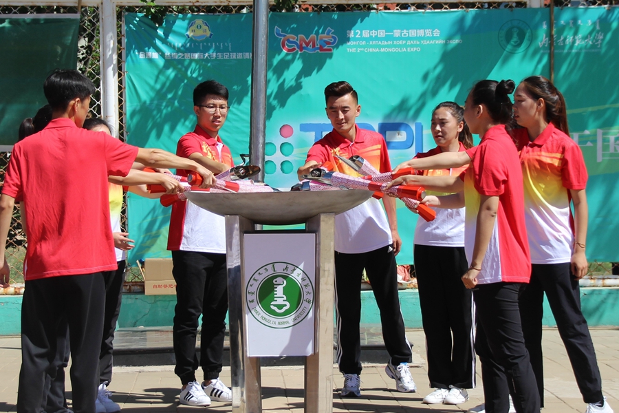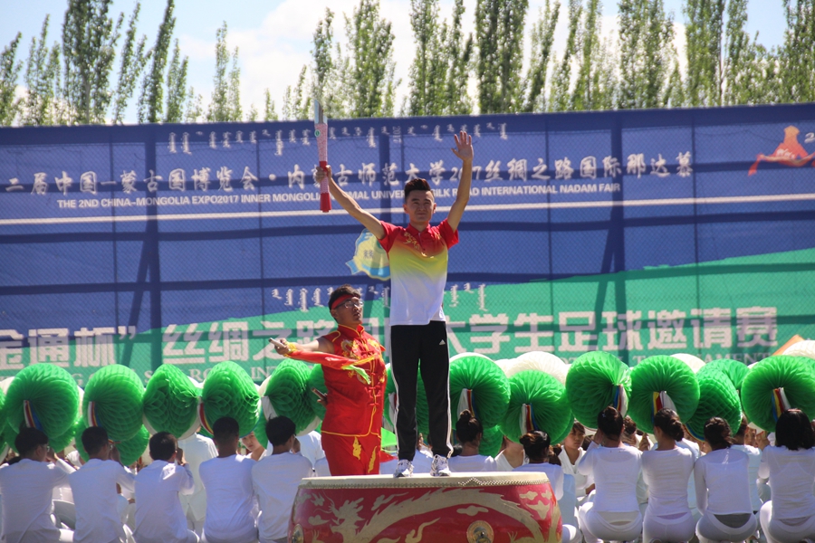 十佳大学生“文体之星”阿亚拉格作为此次校运会主火炬手,带领火炬手们点燃象征奥林匹克精神圣火。