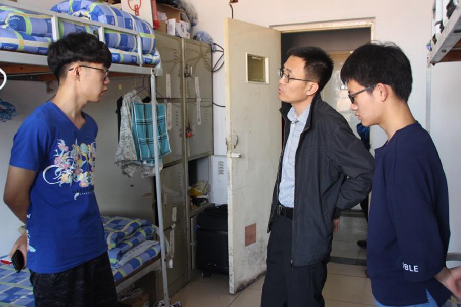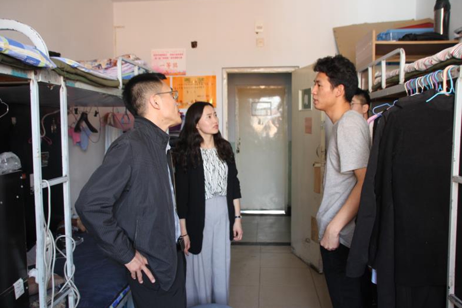在检查过程中,老师们重点对宿舍卫生、用电安全以及防火、防盗等诸多方面进行了排查,对发现的问题现场进行整改。学生宿舍的卫生情况整体较为良好,但也有物品多导致杂乱无序的情况,还有部分宿舍存在卫生死角。针对以上现象,负责的老师和学生干部在检查过程中对问题 特别严重的宿舍做了记录并给出说明,劝其改正。除此之外,老师们还叮嘱同学们要加强安全意识,不允许在宿舍抽烟,切勿在宿舍内使用大功率电器,以免产生火灾等安全隐患。当检查到大四学生宿舍时,何老师向同学们询问了个人的基本现状,对今后有何打算?是否考研等问题进行询问,并提出自己的建议,同学们都受益匪浅。