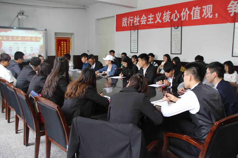 于物理楼会议室开展了“社会主义核心价值观”主题宣讲会,团总支书记萨其尔老师担任宣讲人,学院学生代表参加会议