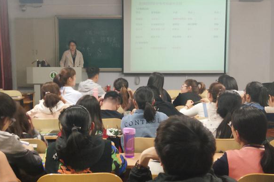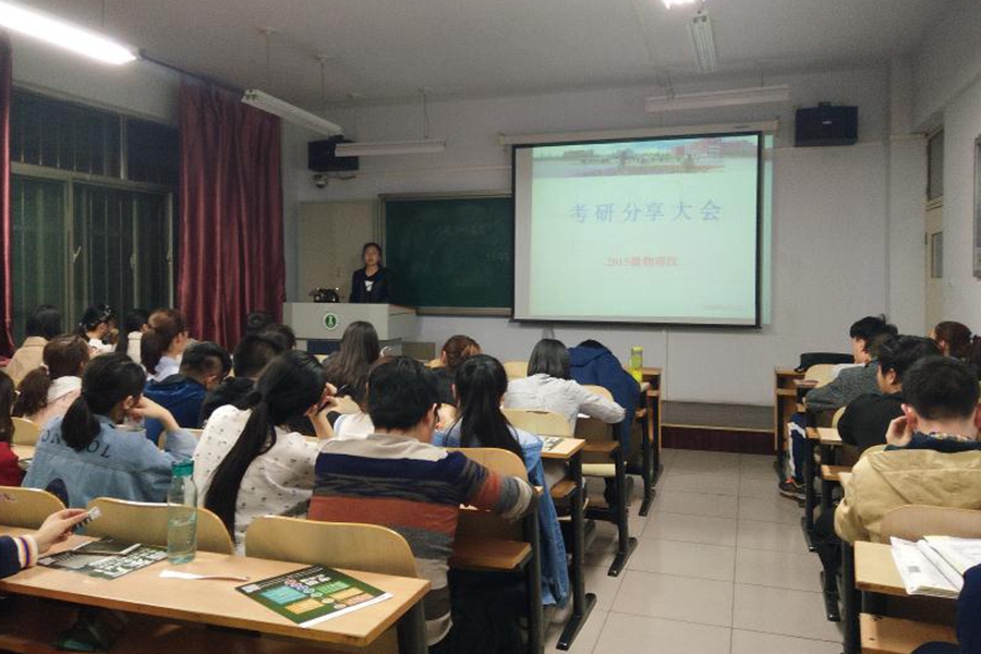 考研动员大会主要由两部分组成。首先,田老师从目前考研形势、政策、历年录取分数以及本班同学们的自身情况等方面展开系统性的讲解,并鼓励大家努力的学习,开拓自己的视野,发掘自己的能力,全面提高自己的综合水平。其次,由学长学姐们用诙谐幽默的语言向物理汉班的学弟学妹们介绍自己考研的院校,传授考研的经验,分享考研的学习方法,并讲述自己一年来的收获与成长。大会最后,田晓老师为2014级学生精彩的讲演奉上自己精心准备的礼物,并与他们合影留念,同时祝福14级学生前程似锦,15级学生们梦想成真。