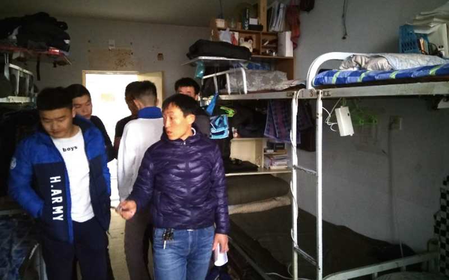 本网讯 为加强学生宿舍安全管理,进一步增强学生防火防盗等安全意识,将危险消灭于萌芽之中。2017年12月29日,球吧网 各级班主任、学工办老师对赛罕、盛乐两校区的学生宿舍进行走访检查。在检查过程中,老师叮嘱同学们要加强安全意识,切勿在宿舍内使用大功率电器,以免发生火灾等安全隐患。学生宿舍安全关系重大,学院领导、老师高度重视学生安全问题,本次走访检查宿舍也是为构建安全卫生宿舍,保护学生切身利益奠定坚实的基础。