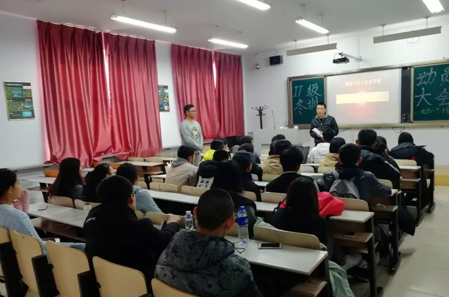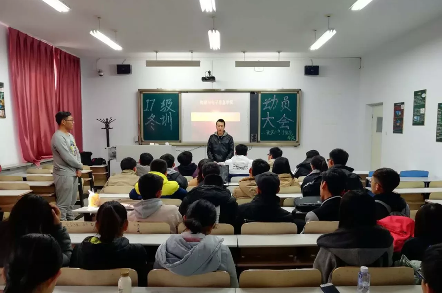 在行知楼召开2017年冬训动员大会。学工办芦嘉琛老师出席并主持会议,学生会体育部全体成员及运动员出席会议。