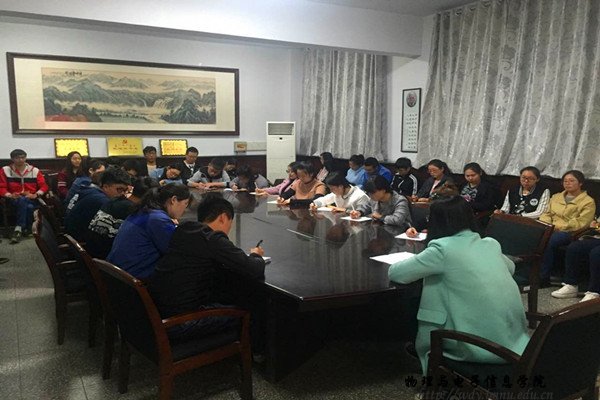 在物电院会议室召开“学习总书记讲话 做合格共青团员”教育实践部署会议。出席此次会议的人员有,学工办塔林托亚老师、学生会团总支成员以及各班团支部负责人。