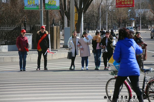 上午九点半志愿服务队来到师大东北角及东南角的十字路口进行志愿服务。同学们在寒风中对不遵守交通规则的行人等进行劝阻,温和有礼的态度赢得行人与交警的一致赞誉。交警同志纷纷表示:希望利用好这样的机制,与学校紧密合作,确保校园周边的交通安全,这也是他们的心愿。尤其是在当前交通安全形势异常严峻的情况下,他们将在以后的监管中,加强对校园周边流动车辆的管理,定期对学生进行交通安全教育。