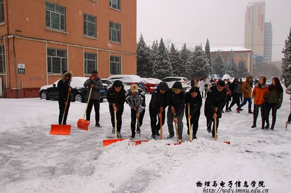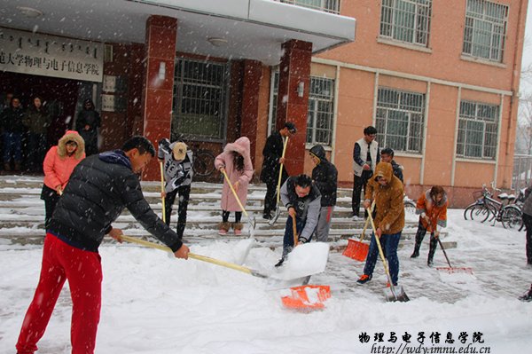 组织各年级学生利用课余时间对物理楼及附近主干道进行除雪活动。物电院学生清扫着路上的积雪,尽管条件恶劣,同学们依旧热情激昂,多劳动少抱怨,用自己的行动与热情温暖着雪后的师大,午饭过后,学院组织16级学生对物电楼前的主干道进行二次清扫。本次扫雪活动也展示出球吧网