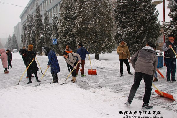学子乐于奉献、利己及他的优良作风,在寒冷的天气中为师大送来一阵暖意。同时提醒大家,雪天路滑,请小心出行,注意安全。