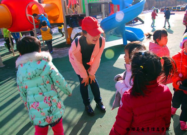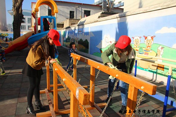 正e联盟志愿者利用课余时间前往内蒙古师范大学实验幼儿园进行志愿服务。