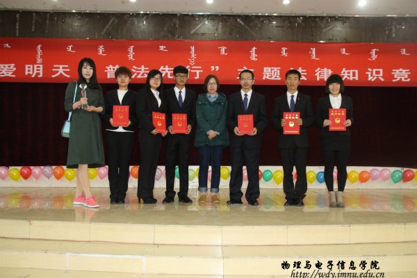 六名参赛选手在学工办王星老师的带领下,参加了在盛乐校区举办的校级“关爱明天 普法先行”主题法律知识竞赛。