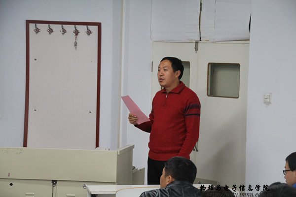 副院长吉日嘎拉教授、物理系主任张敏老师、创新实践部主任曹永军教授及多位教学论老师和12级物理专业班主任出席本次大会,其中由曹永军老师担任本次大会的主持人。