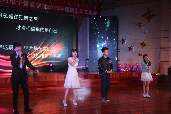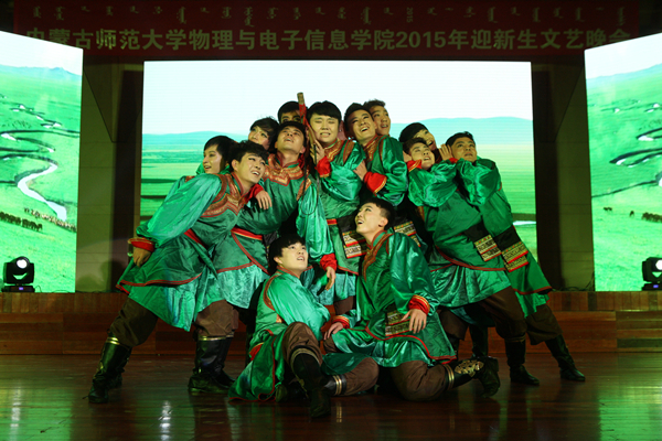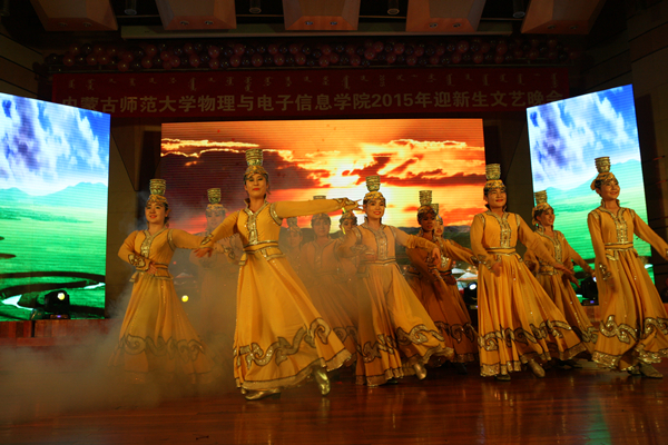 砥砺前行,继往开来,我们一起并肩而行,一路走来,多少过往都化作美丽的故事,在谈笑间,现场一段震撼人心的开场视频聚焦起每一位观众朋友们的目光,视频中讲述了球吧网 经过几代人奋斗的发展历程,球吧网 领导老师们和15级各班班主任欢迎新生们加入物电院,并表达了对新生们的殷切期望。随后,晚会在一曲马头琴合奏《吉祥》中正式拉开帷幕。饱含民族风情的顶碗舞是一种《祝福》,柔美的舞姿唤起在场观众身上每一个亟待释放的细胞;优美舞姿与流行乐的生动演绎,是对在《南山南》家乡的向往;一个故事、一首歌,孟根巴根老师在舞台上表达了希望同学们能像《马兰花》一般灿烂绽放的美好期望;《ice cream cake》的动感,《阿育王》的美感,《春天》的乐感,无不喊出了演员们《我是大明星》的心声;百灵杯一等奖作品蒙古群舞《戈壁沙丘》的演出再度将现场气氛推向高潮。歌曲串烧《把爱唱给你听》、小品《碰瓷》、说唱《爱的誓言》、街舞《la song》、朗诵《蒙古我的骄傲》等节目在观众朋友们的尖叫呐喊和绚丽灯光的映衬中,完美诠释出我们这个时代的青春最强音。在这场盛宴的最后,演员们带来了一首名为《如果明天就是下一生》的合唱,歌声中飘荡出同学们青春自信的风貌和对未来的无限憧憬,绽放着“物电人”的永不服输的向上精神。