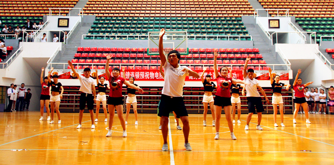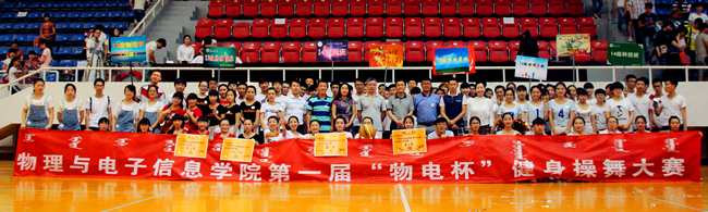 本网快讯 激情盛夏,似火青春。2015年6月28日下午3时,球吧网 在体育学院篮球馆胜利举办首届“物电杯”健身操舞大赛及“我宿我们行”宿舍文化月和“麦克斯韦的光圈”摄影大赛颁奖仪式,再一次奏响了球吧网 文化育人的新篇章。出席活动的嘉宾有院长特古斯教授、党总支副书记何小龙老师、各专业评委、赞助商代表及各班班主任,团总支书记萨其尔老师主持本次活动。