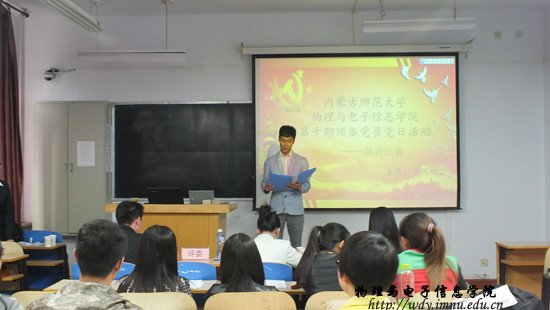学生党支部召集14名优秀的预备党员在田楼127教室举办第十期预备党员党日活动之“中国魂-社会主义核心价值观”主题演讲比赛,校党委组织部荣丽军老师、院团总支萨其尔老师、学工办宋志强老师出席比赛并担任评委。在比赛中,14名优秀预备党员的精彩发言,铿锵有力,催人奋进,生动阐释了社会主义核心价值观的深刻内涵;最终,经评比获得前三名的同学依次为11物汉白思音、11物汉张育芳、12工一张蓝方;随后,三位老师亲切为获奖同学颁发证书并合影留念。此次党日活动不仅振奋人心、凝聚力量,而且更将把中华民族伟大复兴的中国梦自觉内化为实践行动,主动将社会主义核心价值观内化于心、外化于行!