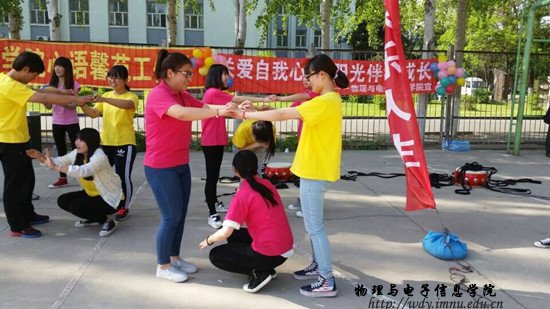 学生会礼仪志愿者部的组织下,30名同学在东篮球场参加由学校举行的“5·25”团体游戏展活动。同学们之间默契配合,相互帮助,共同体验了袋鼠和大树、鼓动人心、背夹气球、巨人脚步等团体游戏。通过此次活动,不仅丰富了同学们的课余生活,还让同学们了解到了5月25日是全国大学生心理健康日,“5·25”的谐音即为“我爱我”,本次活动旨在提倡大学生爱自己,珍爱自己的生命,把握自己的机会,为自己创造更好的成才之路,并由珍爱自己发展到关爱他人,关爱社会。