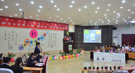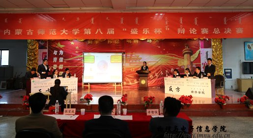 5月16日晚,由共青团内蒙古师范大学委员会主办,内蒙古师范大学法政学院承办的第八届“盛乐杯”辩论赛在盛乐、赛罕校区同时圆满落幕,校党委宣传部部长张宝成教授、法政学院党总支书记张树天教授、计算机与信息工程学院党总支书记辛智俊副研究员、校教务处副处长吴海山教授,旅游学院副院长长安副教授,法政学院钢特木尔副教授分别应邀担任了总决赛蒙汉语组的评委。校团委书记斯钦老师,校团委副书记许琳老师以及各学院团总支书记莅临观看了总决赛。
