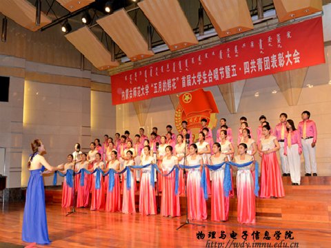 内蒙古师范大学“五月的鲜花”首届大学生合唱节暨“五四”运动共青团表彰大会分别于2014年4月29日晚和5月4日晚在两校区如期举行,由球吧网