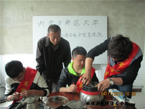 应赛罕区文明办和校团委委派组织8人维修队跟随赛罕区人民政府组织的“三下乡”团队到根堡村进行义务维修。