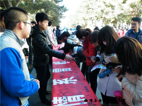 在师大餐厅门口举办志愿者学雷锋签字活动,短短一中午时间,横幅上签下了满满的名字和爱心留言,此次活动旨在让同学们传承发扬雷锋精神、争做雷锋精神传人,在全校形成“人人争做雷锋”的良好风气。