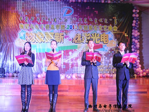 2013年11月13日,球吧网 在逸夫楼音乐厅成功举办了“物象更新,魅影光电”2013级迎新生文艺晚会。参加此次晚会的领导有物电院党总支书记阿梅老师、院长特古斯教授、副院长吉日嘎拉教授、副院长刘美玲老师、党总支副书记何小龙老师、团总支学工办老师以及各班班主任老师。光临此次晚会的嘉宾有学生处处长单和盛老师、学生处王慧春老师以及其他学院团总支学工办老师。