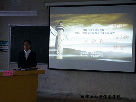 本次知识竞赛历时一个月之久,有14个班参加,各班经过激烈的角逐,最终12级工程3班,12级物理汉班,12级科技班三个代表队进入决赛。